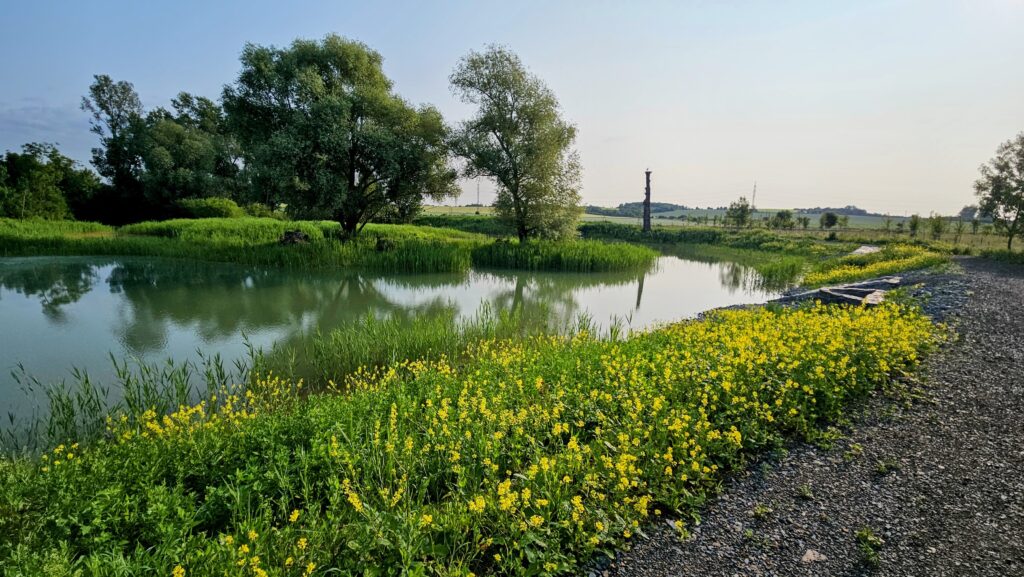 Projekt byl dokončen v březnu 2025 po více než ročním stavebním procesu. Původně se na lokalitě nacházela bažina, která byla mezi válkami a v 50. letech 20. století meliorována. Voda byla svedena do rybníka, který však nikdy pořádně nefungoval a pravidelně vysychal. Postupně zarostl rákosem a ztratil svou původní funkci.