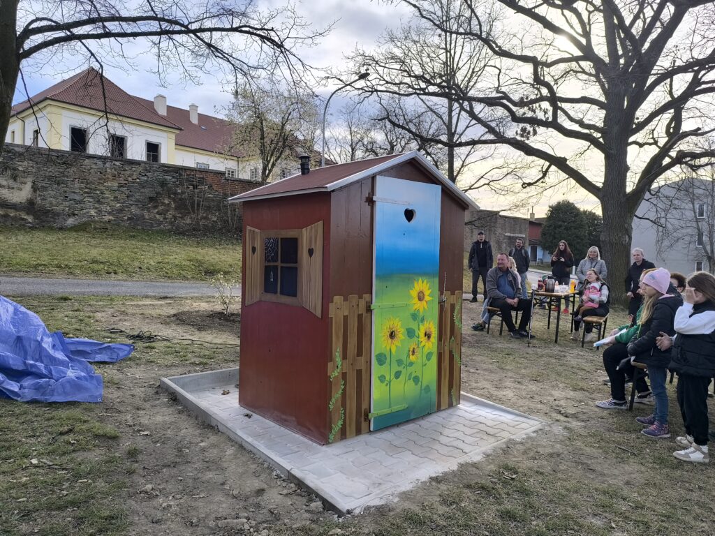 Veřejná ekologická kompostovací toaleta v Cebivi (Okres Tachov, Plzeňský kraj, 266 obyvatel) přináší čisté, bezúdržbové a nízkonákladové hygienické zázemí pro obyvatele i návštěvníky malé obce v okrese Tachov. Dřevěná bouda s originální malbou využívá jednoduchý systém kompostování bez vody a elektřiny – každý uživatel po použití zasype obsah štěpkou, kterou obec vyrábí z biologického odpadu. Močovina se sbírá do kanystru a po naředění slouží jako hnojivo pro veřejnou zeleň, kompost se dále zpracovává v termokompostéru a využívá na obecní pozemky. Osvětlení je soběstačné – žárovka získává elektřinu z vlastního solárního panelu. Celkové náklady byly nízké i díky dotaci MAS Český západ. Provoz toalety je maximálně šetrný k přírodě i rozpočtu obce.